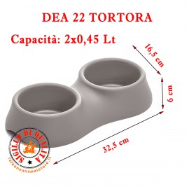 Dea è una graziosa ciotola per cani e gatti, per acqua o cibo in plastica rigida, robusta ma leggera allo stesso tempo. Ha un design semplice ma elegante ed è molto comoda da usare. Non rilascia odori ed è pratica e facile da lavare. Le ciotole Dea sono disponibili in diverse colorazioni vivaci e cinque misure a seconda della taglia del vostro animale. Le comode impugnature laterali permettono una facile presa. Un’ampia base di appoggio e i piedini in gomma antiscivolo assicurano una massima stabilità. Scegliete la ciotola più adatta al vostro gatto o cane tra cinque diverse capacità: 0.45, 1, 2 e 3 litri o doppia da 0,45+0,45 litri. Sicuramente per gatti e cani di piccola taglia sono adatte le ciotole Dea 2, Dea 4 e Dea 22, mentre per i cani di media e grande taglia le ciotole Dea 6 e Dea 8.
