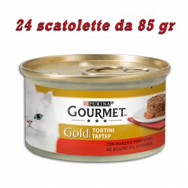 Gourmet Gold Tortini è la nuova linea di gustose ricette a base di carne e di pesce in grado di soddisfare il palato di ogni gatto. La selezione degli ingredienti e la sapiente combinazione delle composizioni restituisce un alimento saporito, nutriente e con una consistenza del tutto inedita. I piccoli bocconcini di carne o pesce sono accompagnati da un tocco di salsa, un ingrediente naturale in grado di stuzzicare il palato di ogni felino domestico. Gourmet Gold Tortini è l'offerta variegata che il micio non si aspetta!