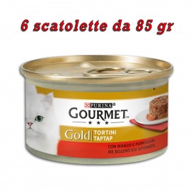Gourmet Gold Tortini è la nuova linea di gustose ricette a base di carne e di pesce in grado di soddisfare il palato di ogni gatto. La selezione degli ingredienti e la sapiente combinazione delle composizioni restituisce un alimento saporito, nutriente e con una consistenza del tutto inedita. I piccoli bocconcini di carne o pesce sono accompagnati da un tocco di salsa, un ingrediente naturale in grado di stuzzicare il palato di ogni felino domestico. Gourmet Gold Tortini è l'offerta variegata che il micio non si aspetta!