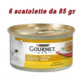 Gourmet Gold Tortini è la nuova linea di gustose ricette a base di carne e di pesce in grado di soddisfare il palato di ogni gatto. La selezione degli ingredienti e la sapiente combinazione delle composizioni restituisce un alimento saporito, nutriente e con una consistenza del tutto inedita. I piccoli bocconcini di carne o pesce sono accompagnati da un tocco di salsa, un ingrediente naturale in grado di stuzzicare il palato di ogni felino domestico. Gourmet Gold Tortini è l'offerta variegata che il micio non si aspetta!