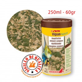 sera Vipan Nature è il mangime completo in scaglie galleggianti senza coloranti e conservanti per tutti i pesci ornamentali che mangiano in superficie.